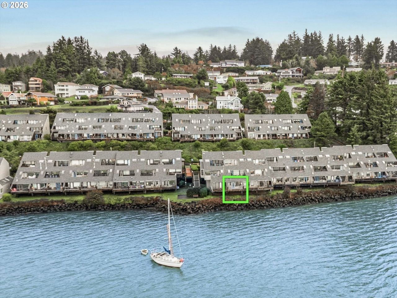 Bay-front condo with stunning bridge and water views, offered fully furnished. Updated kitchen and bath feature quartz countertops, plus a new washer and dryer. King-size bedroom with ample storage. Enjoy resort-style amenities including an indoor pool, sauna, spa, fitness room, and private crabbing dock with cookers and fish-cleaning station. Relax, unwind, and take in the best of bayfront living here on the Oregon Coast.