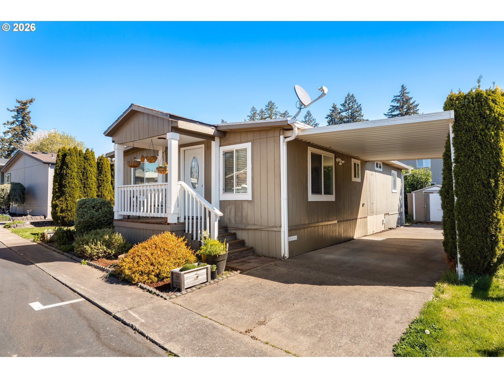 Charming & spacious manufactured home in an ALL AGES community that is move-in ready (King Village-Tigard). The house has been renovated in recent years and includes improvements such as new laminate flooring, new windows, and fresh paint-both interior and exterior. It features a new kitchen-including countertops, cabinets, and a garbage disposal-as well as a renovated bathroom with new tiles and flooring. The living room features bamboo hardwood floors. Space rent is $1243/month. This is one you definitely do not want to miss - call today for more information or schedule a tour!