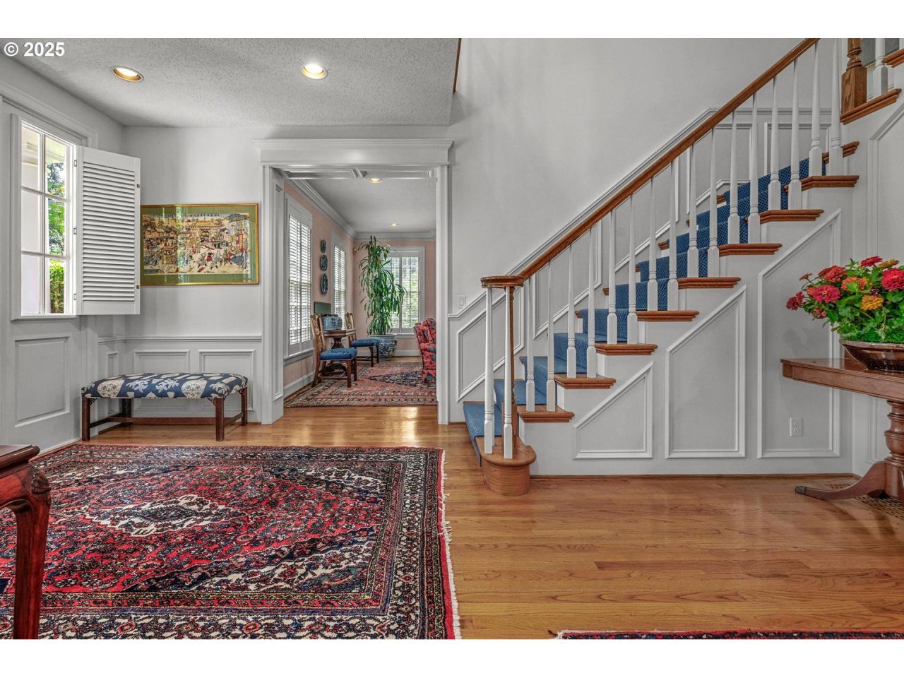 Privately tucked down a gated street, this beautiful home offers the perfect blend of seclusion and convenience, just minutes from downtown. Surrounded by lush gardens and thoughtfully designed outdoor spaces, you'll find a gorgeous patio and expansive deck ideal for entertaining. Inside, the modern floor plan balances elegance with everyday ease. Formal living and dining rooms showcase timeless charm, while the open kitchen and family room seamlessly connect to the outdoors. Upstairs, four bedrooms include a spacious primary retreat with a fireplace, walk-in closet, and large ensuite bath. The lower level adds even more flexibility with a bonus room plus an additional bedroom and full bath. A rare combination of privacy, beauty, and proximity, this home makes city living feel like a retreat. [Home Energy Score = 1. HES Report at https://rpt.greenbuildingregistry.com/hes/OR10241810]