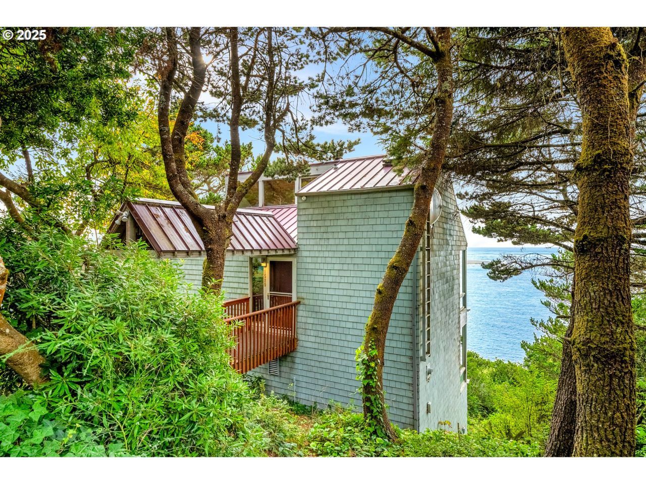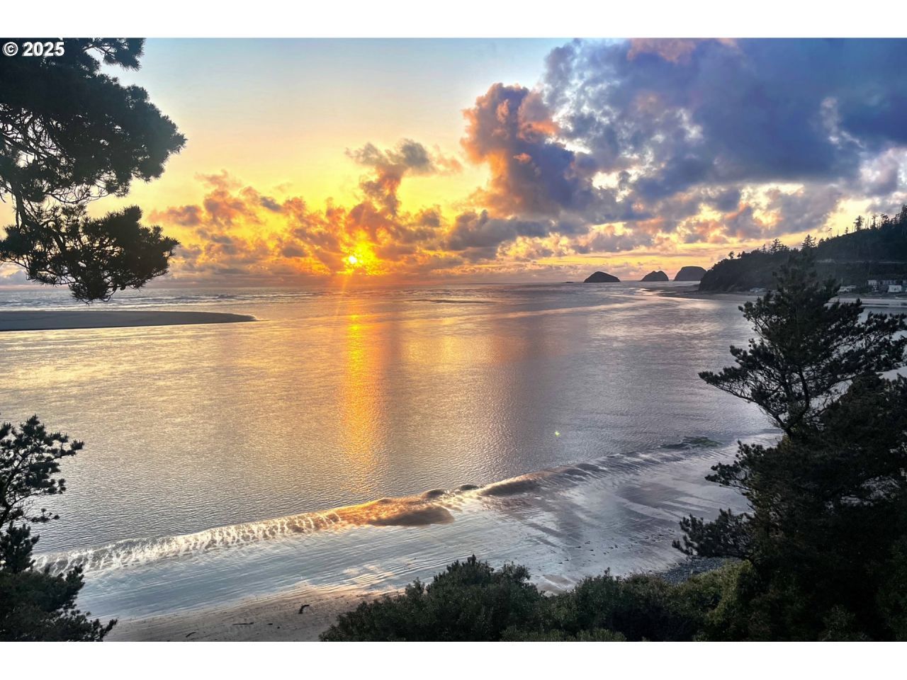 Classic Beachfront Vintage Cabin offers a panoramic view of Netarts Bay and the ocean, complete with private beach access! A truly remarkable home on coveted Pearl Street in Netarts is available after being in the same family since it was built by the owner/architect. Designed for comfortable living and breathtaking scenery, the main floor offers an open-plan layout featuring a kitchen, dining room, and living room, centered around a retro wood burning fireplace. A half bath and spacious deck are also located on this level. The entire west wall is lined with floor-to-ceiling windows, ensuring abundant natural light and unobstructed views of the bay. Descending a spiral staircase from the main floor, you'll find two well-appointed bedrooms. The master bedroom includes an ensuite full bathroom, while the guest bedroom features a full bath (including a bathtub) and a convenient laundry room located just across the hall. Ascending the stairway from the main floor leads to a versatile 3rd-floor loft, perfect for an additional sleeping area, office, or creative space. Outside is a solidly built woodshed with a tile roof, providing practical storage. The current owner holds a transferable Tillamook County Short-Term Rental License, and the property has consistently received almost all 5-star reviews, highlighting its proven popularity and income potential. This is the perfect opportunity to own a rare find in Netarts!