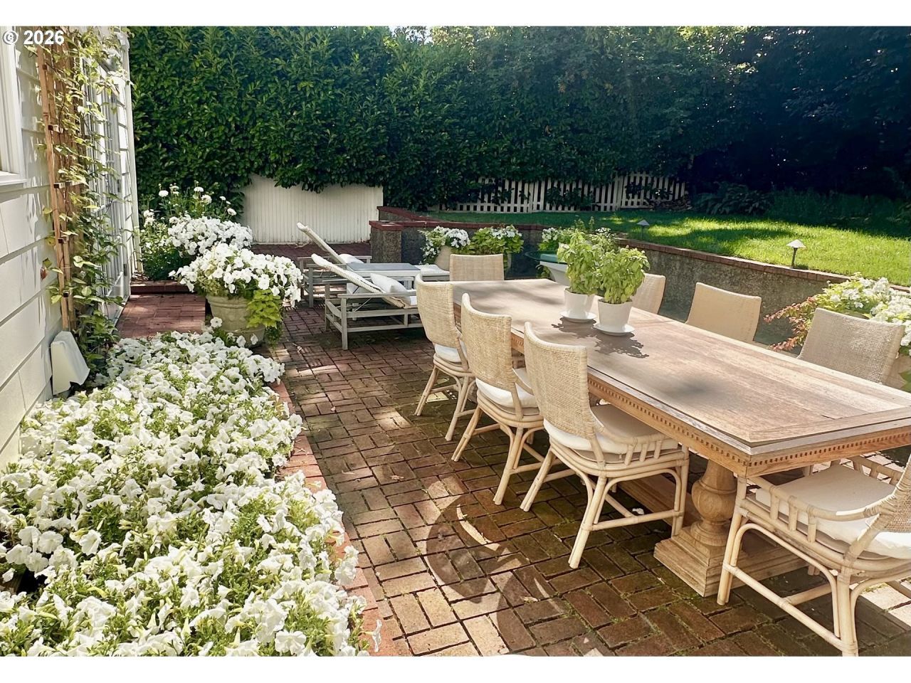 Discover elevated style and timeless charm in this beautifully updated Cape Cod, nestled on a quiet, tree-lined street in coveted Dunthorpe. Surrounded by lush gardens and natural privacy, this light-filled home offers a serene neutral palette and thoughtfully designed living spaces throughout. Bamboo floors, abundant built-ins, and carefully curated updates enhance both function and character. This home is a seamless blend of classic architecture and refined modern living.The private backyard is a true oasis, featuring a welcoming deck and an enchanting Italian-inspired garden framed by multiple trellises draped in climbing wisteria and clematis. A white picket fence and flowering gardens create exceptional curb appeal. Located in the sought after Dunthorpe neighborhood in unincorporated S Portland, this quiet enclave offers both privacy and convenience - just 15 minutes to downtown Portland and five minutes to Lake Oswego, with premier dining and shopping nearby. The Lewis & Clark trails are just a short stroll away.French doors in the exquisite dining room open gracefully to an expansive brick terrace, creating a seamless flow for refined indoor-outdoor entertaining. The elegant formal living room-anchored by a wood-burning fireplace and custom built-ins-adjoins the dining room. Just off the kitchen, the family room features a new gas fireplace and direct access to the terrace, blending comfort with livability. One of the highlights of the home is a spectacular main level office or 4th bedroom with floor to ceiling bookshelves and built-ins. Upstairs, the spacious primary suite serves as a serene retreat, complete with a fully renovated bath and beautifully customized closets featuring dedicated jewelry drawers and thoughtfully designed shoe storage. A generous, light filled bonus room provides space for guests, work, or recreation. Each bathroom has been tastefully remodeled to reflect modern comfort while honoring the home's enduring architectural character.