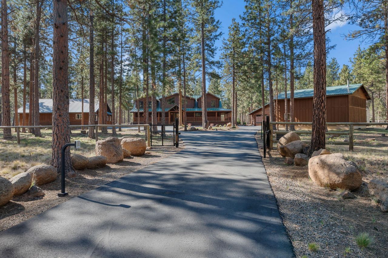 This custom home in desirable Junipine Acres offers a rare blend of rustic elegance & complete privacy just 4 miles from downtown Sisters. The interior features an open floor plan great room anchored by a gourmet kitchen with a large island & stainless steel appliances. Wide plank pine flooring & wood-framed windows flow throughout the home, leading to a main-level primary suite equipped with a soaking tub, walk-in shower, & walk-in closets. Upstairs features a versatile loft as well as two additional ensuite bedrooms featuring individual sitting areas for added comfort. The exterior is designed for outdoor living with a covered wrap-around porch & a large patio featuring a firepit. Practicality meets luxury with metal roofing on all structures, a fully fenced & gated perimeter, & a paved driveway with two RV pads including hookups. Additional structures include a large barn/shop, a detached two-car garage, and a 990-square-foot permitted bunkhouse with a bath and office space.