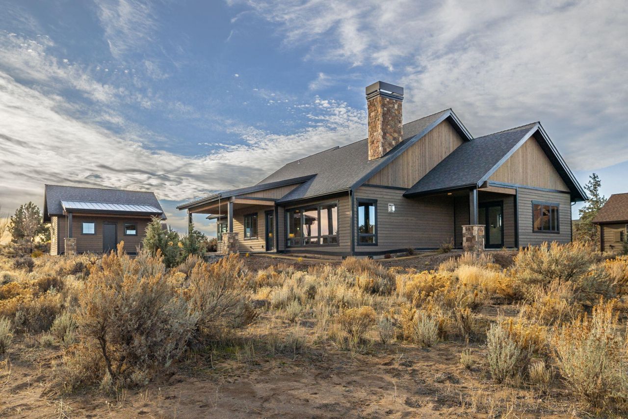 Nestled in the high-desert landscape of Brasada Ranch, this 2968 sqft custom home offers luxury living. The kitchen is a chefs dream with stainless appliances, including a 6 burner Thermador 48 range, and a built-in fridge/freezer. An oversized pantry with a barn door adds to the convenience, with room for a second fridge. Quartz countertops throughout the home, including a waterfall island with a built-in table, exemplify modern luxury. The formal dining area includes built-ins, and a butlers pantry with a wine fridge. The primary suite features a tile shower, two vanities, space for a stacking washer/dryer, walk-in closet, and a soaking tub. Unique to this home are the high end black Milgard fiberglass windows, a gorgeous laundry room, a junior suite, a built-in bench by the owners entrance, hardwood floors, Montana mossy rock, tile and wood accent walls, 8 solid stained fir interior doors, and custom cabinetry.