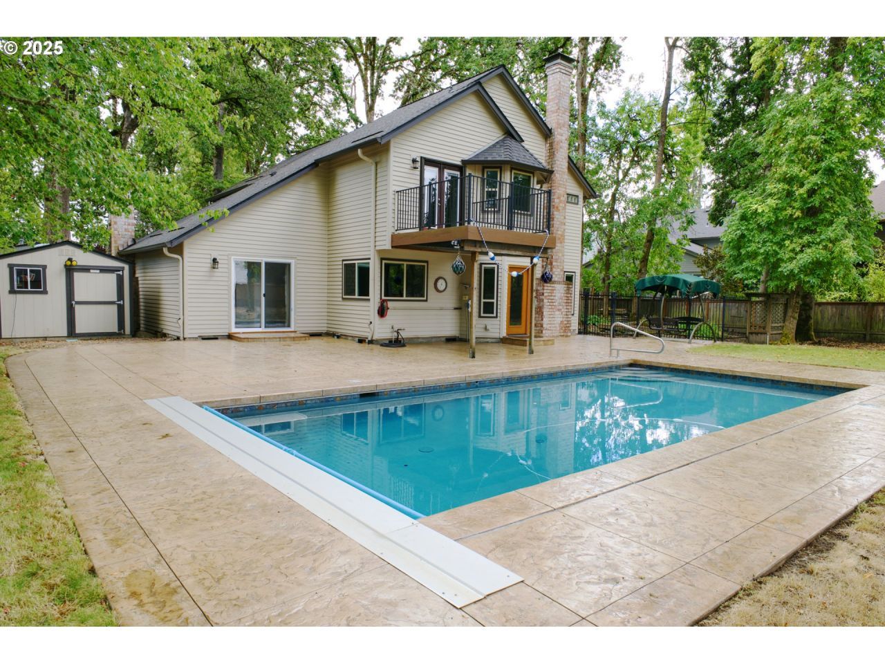 Seller offering comprehensive AHS home warranty that covers both pool and studio. This versatile property offers comfort today and possibilities for tomorrow. One-acre property in a prime location featuring two full primary suites with one conveniently on the main level. Outdoors includes a stamped concrete patio, saltwater heated pool with automatic cover, pond water feature, and attached two-car garage including storage. Recent upgrades include: 50 year roof, gutters, skylights, interior and exterior home paint, shop exterior paint, AC, two new exterior doors to the back deck, upgraded carpet throughout all upstairs bedrooms, updated blinds, composite upper deck, all stainless steel kitchen appliances, and an upgraded sprinkler system. Outbuildings include a spacious heated shop, attached 36' deep garage, private-entry ADU with full kitchen and laundry room, 3-wall RV carport full hookup including RV dump, 16' deep tool shed, and additional parking. This is a rare find, a highly functional home with exceptional flexibility. Zoned R9 with utilities accessible at both the front and rear of the property. Ideal for homeowners ready to make it their own or investors exploring redevelopment potential (buyer to verify).