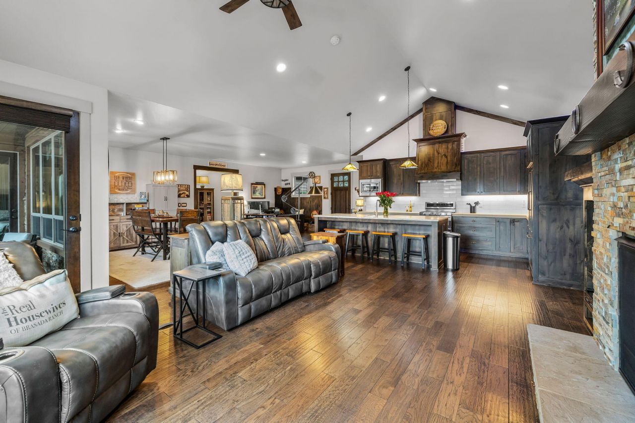 Elegant Brasada Ranch custom home on .70 acres with stunning views of Mt Bachelor/Jefferson. Located in one of Central Oregons most sought after luxury communities, featuring lakes, pools, trails, golf, wildlife, equestrian center and much more. Masterfully designed for elevated indoor-outdoor single level living. Open living/kitchen perfect for entertaining w/ high ceilings, tons of light, gas fireplace, built ins, oversized bar, artisan-crafted cabinetry, walk in butlers pantry & top of the line appliances. Primary suite w/ patio access, Walk-in shower, & oversized Walk-in-closet. 3-car garage w/ rear yard access. Outdoor features include covered back patio w/ fire pit & TV hookups, gazebo w/solar lighting, shed, water feature, garden space, & remarkable sunset + dark-sky views & set near end of quiet loop. Access trails through your backyard.STRs allowed per community rules (buyer to verify). A rare blend of luxury, privacy & lifestyle.