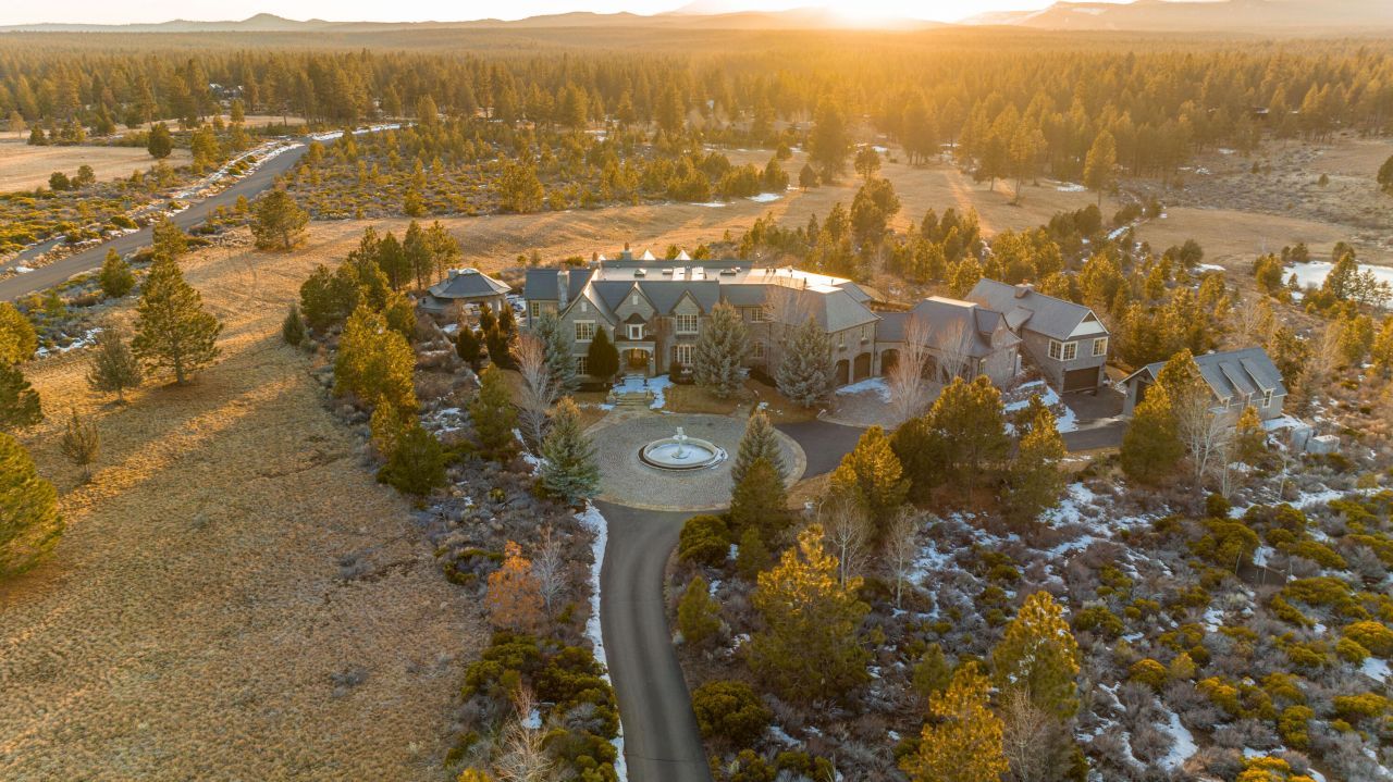 This elegant and luxurious private estate in The Highlands of Bend, Oregon is an architectural treat designed by renowned Harrison Design. Thoughtfully curated with no expense spared, the level of customization throughout the home and property is unlike any other. Details range from the hand selected stone from Jerusalem to the hand-blown Murano chandeliers; the level of detail continues in every room. Situated on a spectacular 10 acres with explosive 360 degree views that include the Cascade Mountain range. Features include a private guest home, attached 4 car garage, detached 4 car garage and RV garage with hookups and dump. Outside soak in the direct afternoon sun from the pool and entertain from one of the two outdoor kitchen areas, one off the house and the other in the covered cabana that is also home to a changing room and bathroom inclusive of a shower. Located just minutes to downtown, schools, golf, and all the outdoor recreation Bend has to offer. See it to believe it!
