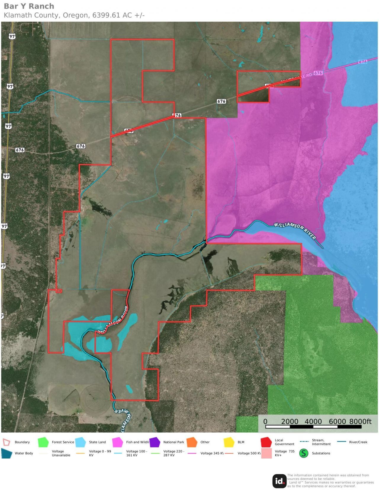 Bar Y Ranch offers the cattleman or investor a unique opportunity to acquire this reputable higher-elevation summer cattle pasturing operation. The 6,399.61± mostly contiguous acres include 5,248.3± acres of water rights available for a 125± acre center-pivot, and 4,427.2??± acres of flood irrigated pasture, plus additional sub-irrigated pasture. An expansive set of cattle working corrals with scales, hay storage, a Quonset shop, housing, and various outbuildings all support cattle operations. With good management and adequate labor, a savvy operator can summer a significant number of cow/calf pairs and/or yearling cattle on this ranch. The Williamson River meanders through or borders the ranch for 2.85??± miles. From the ranch, 47± miles to Klamath Falls for goods and services, and 90± miles to Bend. If you are looking for a significant holding with solid cattle production capability, plus recreational benefits in a beautiful mountain climate, you should take a serious look at this!
