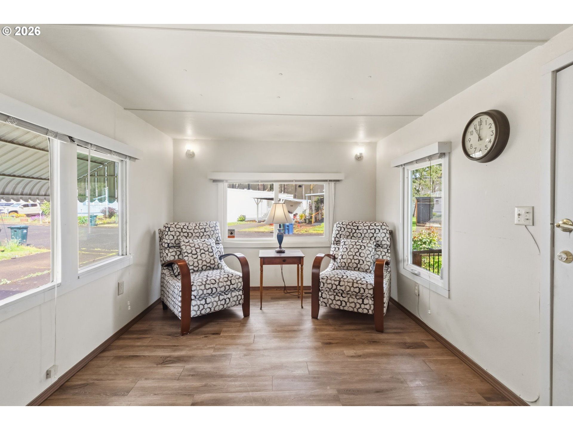 Adorable and move-in ready 1-bedroom, 1-bath manufactured home in Chalet Village, a vibrant 55+ community rich with amenities! Built in 1966, this charming home has been thoughtfully updated with newer double-pane windows, vinyl plank flooring, fresh interior paint, and beautiful granite countertops.Enjoy easy access with a wheelchair ramp leading to the front door, plus a fully fenced yard. This home features forced air heating and wall A/C units for year-round comfort. Outside, you'll find a covered carport with two convenient storage sheds, along with a cozy covered patio seating area-perfect for relaxing.Offered at under $30,000, this low-maintenance home can even be sold furnished, making it an excellent option for those looking to relocate or enjoy a fresh start. Chalet Village offers a welcoming, connected lifestyle with amenities including a clubhouse with a community kitchen, dining hall, TV lounge, pool tables, a coin operated laundry facility, saunas and a seasonal pool. Space rent is $1,015/month; buyer must be park-approved. Don't miss this affordable opportunity-schedule your private tour today!
