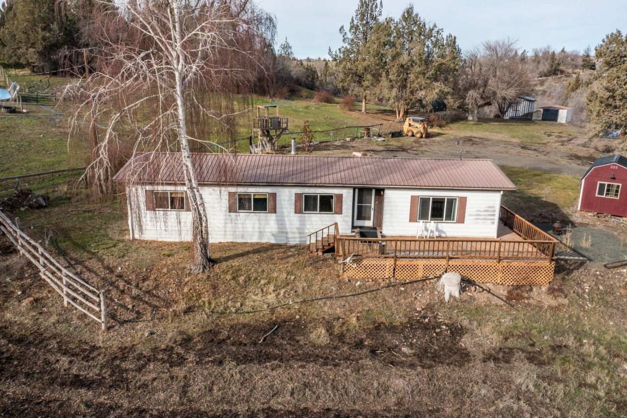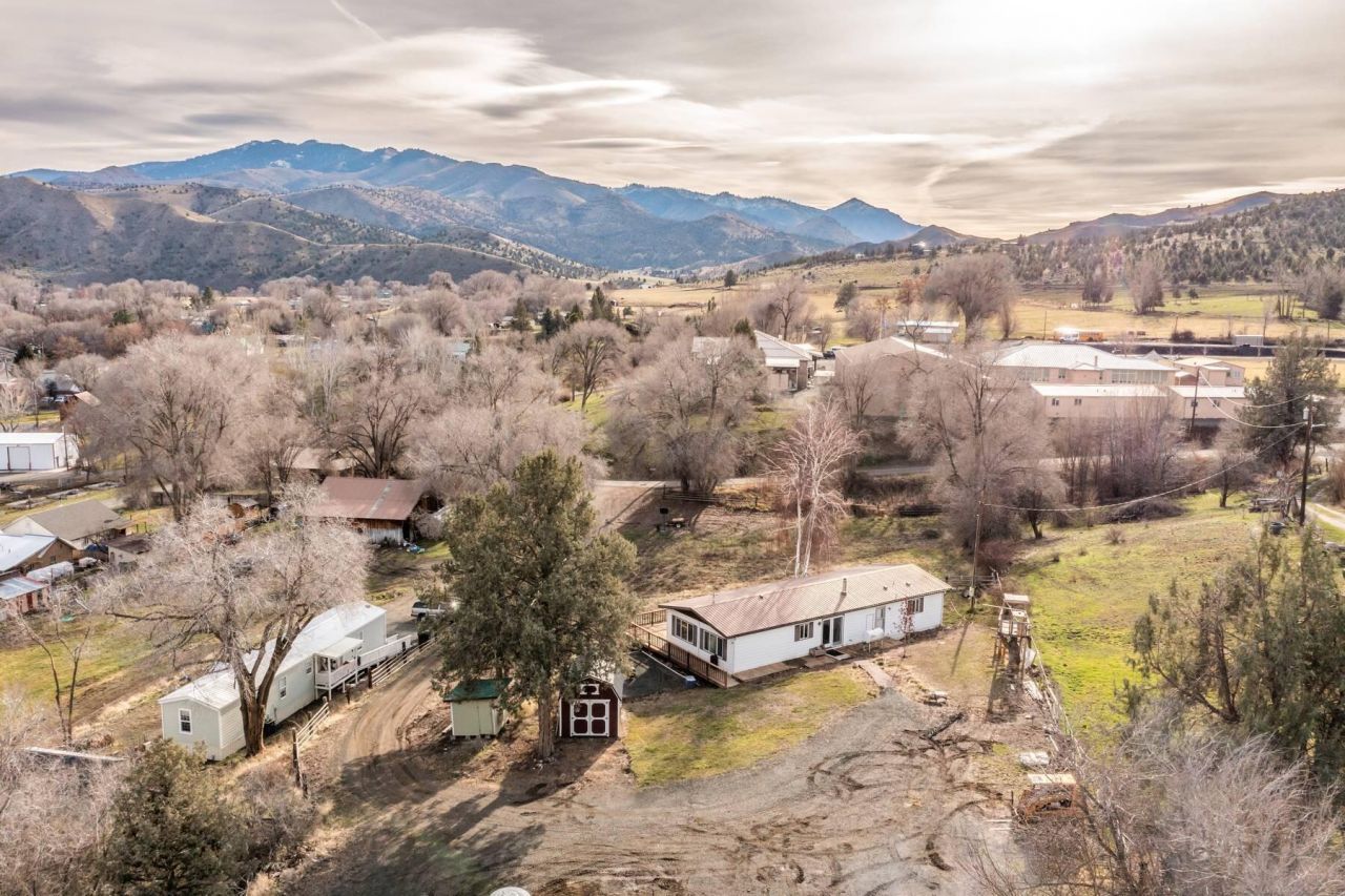 Rare opportunity to own 4.3 irrigated acres within Dayville city limits, offering a peaceful, private setting with elevated views overlooking town. The property includes fenced, irrigated pastures and a 1977 manufactured home, ideal for small-acreage living with space for animals, gardening, or future potential. A 2024 survey of all fence lines has been completed.Irrigation features piping, sprinklers, and the option for flood irrigation or hand lines. Property improvements include a 10x12 insulated workshop with loft, 12x12 storage shed with cellar, chicken coop, enclosed garden area, and multiple fruit trees. Three irrigated pastures provide excellent functionality.The home offers an updated interior with metal roof, laminate flooring, monitor oil stove, newer wood stove, remodeled main bathroom, and partially updated primary bath. Deck needs replacement. City water and sewer.Enjoy beautiful views, all within walking distance to Dayville Public School