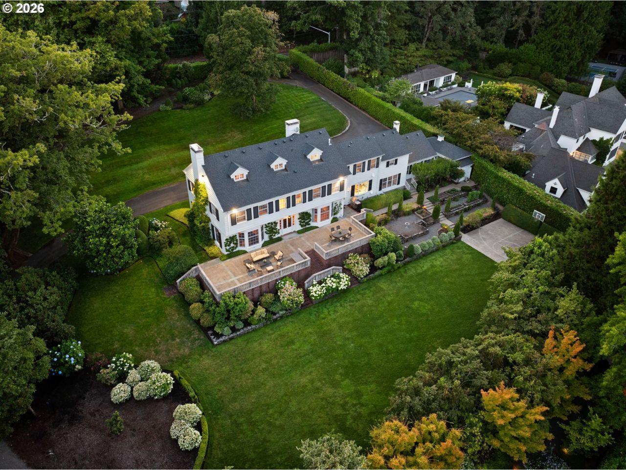 Classic beauty on nearly 2 gated acres of picturesque grounds in acclaimed Dunthorpe/Riverdale School District. A National Historical Registry treasure, this true 5 bedroom estate enjoys all updated systems including plumbing, electrical, roof, nearly new chef's dream kitchen and more. Beautifully appointed and preserved with gorgeous millwork & moulding, 3 functioning fireplaces, gleaming hardwoods, grand room sizes and a 4 stop elevator. Fully fenced grounds include heated playhouse, sports court/play structure, garden beds, huge entertaining verandah, and wedding worthy gardens. Plenty of space to add a pool with easy access and handy utility hook-ups. Top-ranked Riverdale School District with K-8th grade school and acclaimed high school that offers IB curriculum. Central location that offers quick access to PDX, vibrant Lake Oswego Village, downtown Portland, character-filled Sellwood, gourmet markets and restaurants, and much more! As an added bonus, the full basement boasts a temperature controlled wine cellar, abundance of built-ins, space for fitness equipment, kids play area and more. Your private luxurious estate in the Portland metro's most beloved neighborhood awaits!
