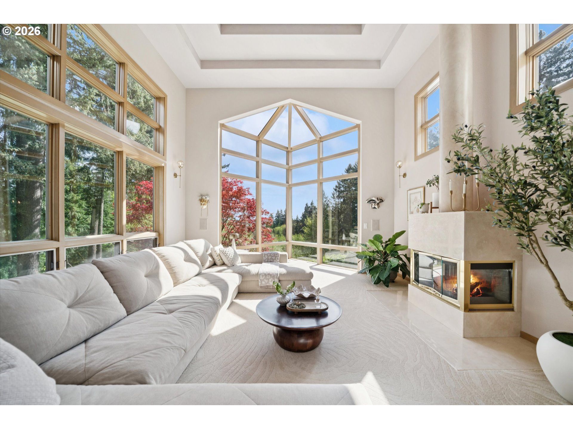 Unrivaled privacy meets resort-scale living in the prestigious Stafford Summit Estates. Perched at the heights of the coveted Stafford area, this gated 2.11-acre sanctuary offers ~6,400 sq. ft. of architectural grandeur defined by panoramic territorial views. The home's dramatic volume is anchored by a solarium-style living room where floor-to-ceiling glass and geometric skylights frame a lush forest backdrop.Designed for effortless flow, the main level features a grand primary retreat with a private balcony, an additional bedroom suite, an executive office, and an expansive family room that opens to a 700+ sq. ft. balcony-the ultimate vantage point for sunset entertaining.An expansive lower level transforms into a private hospitality hub, boasting three additional bedroom suites, a billiard room, a professional wet bar, and a dedicated wine tasting room with artisan murals. Among these is a newly reimagined designer guest suite, offering a boutique-hotel aesthetic with a backlit vanity and mosaic-tiled walk-in shower.The crown jewel of the property is the outdoor oasis: a tiered private resort featuring a custom in-ground pool and hot tub, anchored by a detached pool house complete with an additional full bathroom and kitchenette. Surrounded by lush, natural landscapes, secure gating, and the elite West Linn-Wilsonville school district, this estate is a rare opportunity to own a private destination in Stafford. Welcome home to Valley View.