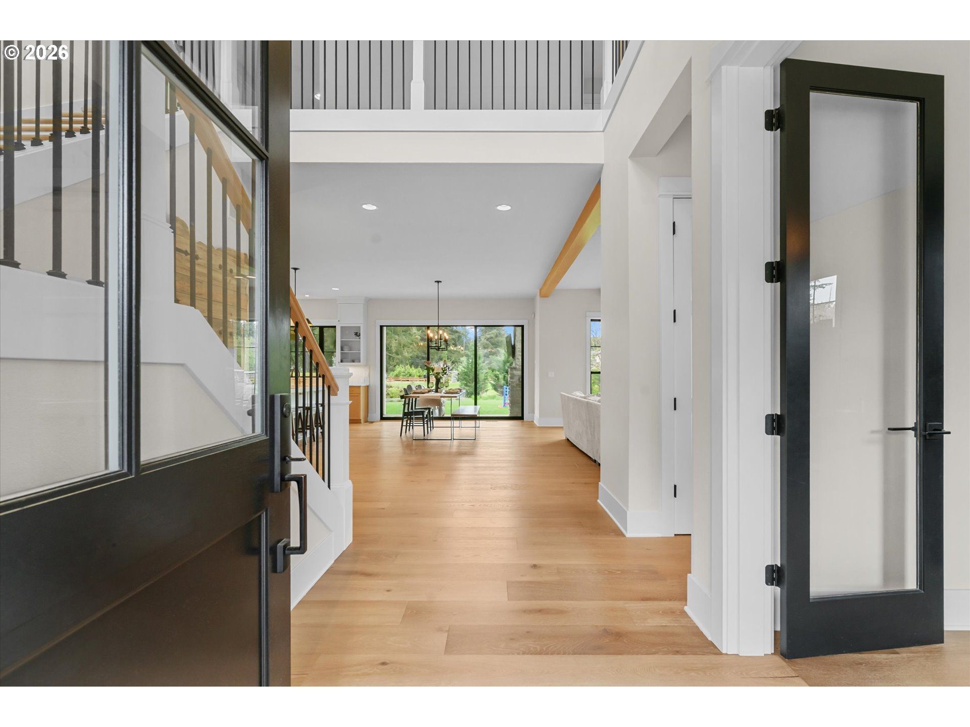 Truly remarkable 2023 Modern Farmhouse on small acreage in gated community that is better than new! Spanning 4,270 square feet, this luxury residence offers 5 bedrooms and 4.5 bathrooms, thoughtlfully designed with a superb floor plan! Built by an award winning Street of Dreams builder, this home has a dramatic grand entry with soaring 10-foot ceilings which sets the tone for an incredible wow factor! This leads into a show-stopping chef's kitchen featuring a massive island, dual dishwashers, and a fully appointed butler's pantry. Seamless indoor-outdoor living awaits with a covered entertaining space complete with an outdoor BBQ station, heaters, and room to host gatherings truly year-round! The expansive south-facing level lawn is ideal for a future pool or simply enjoying sun-filled afternoons. Retreat to the primary suite, where a spa-like bath with heated floors, a soaking tub, and an oversized walk-in closet creates a true sanctuary. An additional ensuite bedroom adds flexibility for guests or multigenerational living. Thoughtful upgrades include whole-home generator, AC, natural gas, and a full solar panel system capable of producing more energy than the home consumes. With a 3-car garage and situated in a private gated enclave of only five residences, this home offers rare luxury, privacy, and sustainability on 2.6 pristine acres. You are welcome to fall in love with it all!