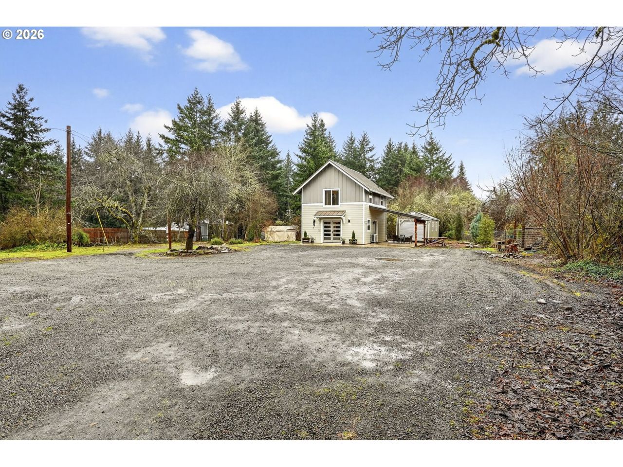 Set on nearly an acre of gated, private grounds with peaceful rural surroundings, this beautiful newly built home blends modern comfort, quality craftsmanship, and peaceful country living. The exterior features a durable metal roof, James Hardie fiber cement siding, and a high efficiency Daikin mini split system for year round heating and cooling. Inside, double entry doors open to a bright, open concept layout with wide plank engineered oak flooring and an inviting living space. The kitchen is well appointed with stainless steel appliances, including a Café by GE refrigerator, induction range, and microwave, along with quartz countertops and custom white oak cabinetry. The main level includes a laundry area with stainless LG washer and dryer and a half bath. Upstairs are two light filled bedrooms and a full bath with large format tile flooring. Recent upgrades include an expanded concrete patio with a beautifully built lean to covered area, creating an ideal space for summer entertaining, outdoor dining, and relaxing in the shade, along with a large tool shed and workshop just off the patio for added storage and workspace. Conveniently located with easy access to Highway 211, the home is approximately 30 minutes from Oregon City and 15 minutes from Molalla and Estacada for shopping and dining. This special property offers privacy, versatility, and quality construction in a setting that truly feels like home. Schedule your private tour today!