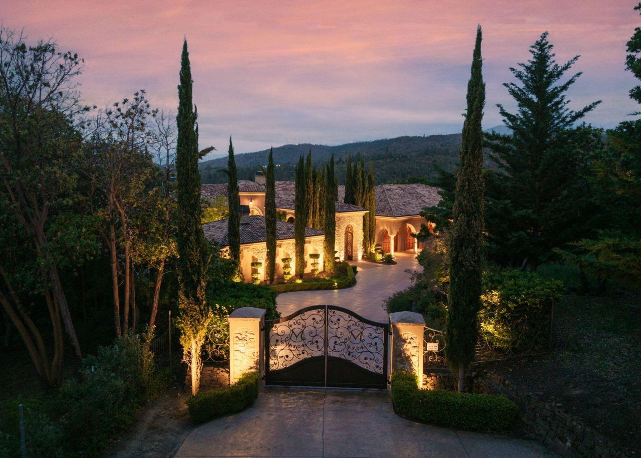 Masterpiece of Art in Southern Oregon, 1st time on the market! Overlooking Jacksonville Mts and City lights! Private park-like 5 acres w/city water! Mediterranean/Old world style w/stone gated entry. 12 car garage. 9904 SQ FT of luxury. Attention to details throughout this amazing property. 4 primary suites, 6 baths, Pebble tec pool and spa, covered patios w/stone fireplace, gated courtyard w/large fountain and guest Casita! Fall in love; 13 double door entry that takes you into a grand great room w/many 9 French doors opening to the outdoor living room, 8 fireplaces and dome ceilings. Large stone fireplace in kitchen/breakfast room. Beautiful kitchen that any chef would love w/butler pantry and catering area w/third sink and wine fridge. Primary suites w/custom tall ceilings. Tuscan Villa with a 12 car garage, elegant formal dining rm with built-ins. Downstairs family, theater and exercise rms. Built & architecturally designed by Mike Pagnini a premier builder in Southern Oregon.