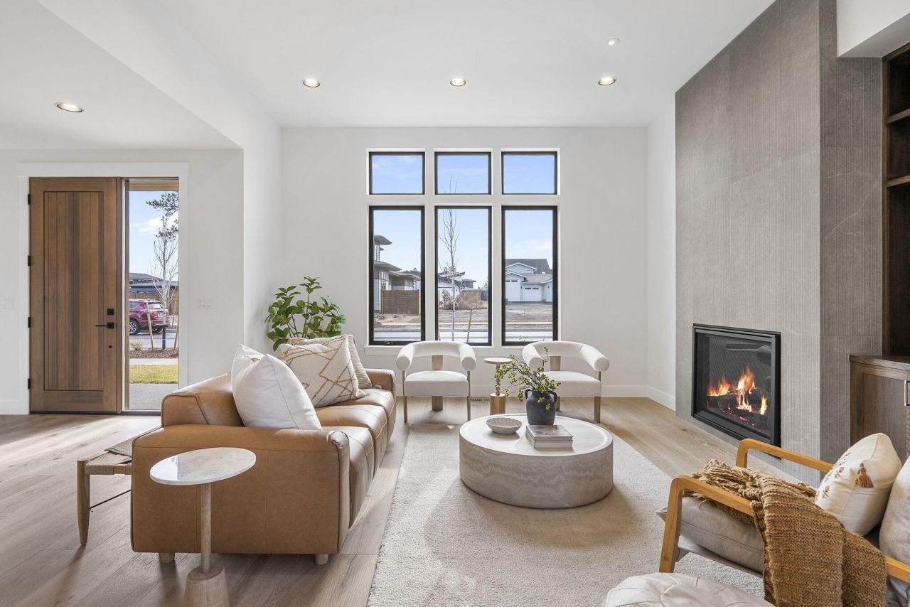 This brand new, never lived in Discovery West home offers a refined blend of comfort, function, and elevated finishes. The open main living area is anchored by a gas fireplace and flows seamlessly into a well appointed kitchen with an oversized island, premium appliances, and a walk in pantry, ideal for both daily living and entertaining. The main level primary suite provides a private retreat with a tiled shower and spacious walk in closet. A dedicated office, mudroom, laundry room, and powder bath add everyday ease. Upstairs, two bedrooms, a full bath, and a versatile bonus room offer flexible living options. Outdoor living is enhanced by a covered patio and a fully fenced, landscaped yard. A three car garage includes an oversized third bay with a 10 foot door, perfect for recreational gear or larger vehicles. Energy efficient, solar ready, and conveniently located near trails, parks, and westside Bend amenities.