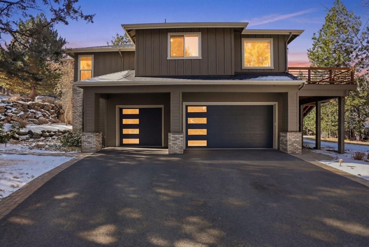 This custom designed mountain modern home offers the perfect blend of elegance and comfort. Views of the Cascade Range, this stunning property is an entertainers dream. Sits on an oversized lot with a flat yard and driveway. The main level of the home offers the primary suite along with 3 additional bedrooms, another 1.5 bathrooms, laundry plus the home office. The lower level of the home includes a full home gym with a new Nordic Spruce sauna and hot tub on the patio, additional guest suite, home theater, fireplace, full bar and game area large enough for a pool table, the bar has a built in refrigerator that holds kegs for the built in taps at the bar. This home has been meticulously maintained and thoughtfully updated. Recent upgrades include, kitchen cabinets and island countertop, new garage doors, a new roof, new interior paint, new fixtures, new interior doors throughout, and custom front door and entry. Surrounded by beautifully landscaped grounds on 1/2 acre on a flat corner.