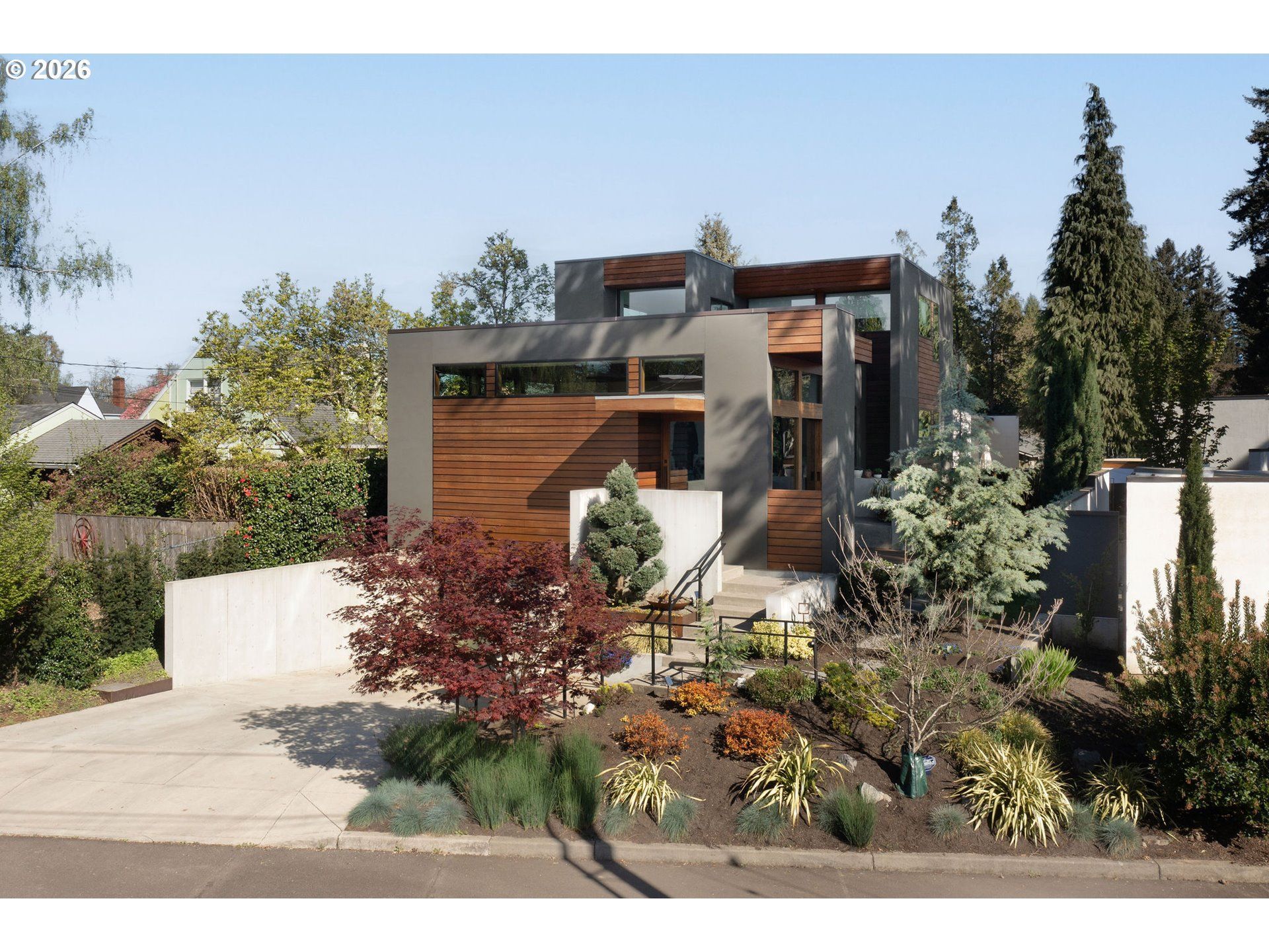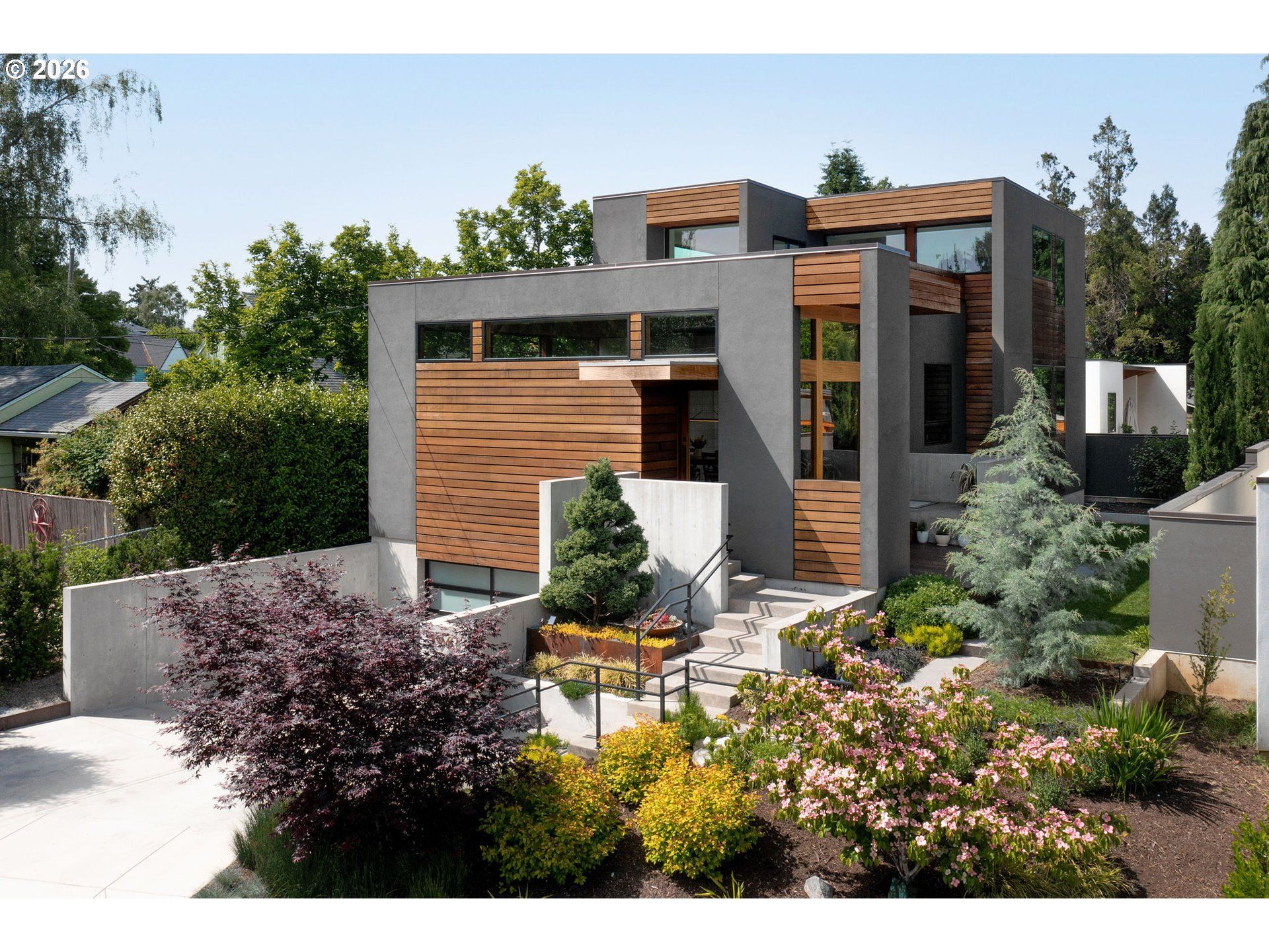 A Rare Modern Masterpiece by Eric Butler Design. This is not your typical new-construction modern! Designed and built by renowned local architect and master craftsman, Eric Butler, this custom home delivers exquisite craftsmanship and thoughtful detail at every turn. Located on a quiet, private street composed entirely of modern homes - a true 'Street of Dreams - this is a rare opportunity to own a standout modern property in a class of its own. Natural light pours through expansive windows and skylights, blurring the line between indoors and out. Every window is intentionally placed to frame the surroundings while maintaining privacy throughout the home. Rich walnut and sapele woodwork add warmth, and polished concrete floors ground the main level. The chef-designed gourmet kitchen is built for serious culinary work and effortless entertaining, with premium stainless appliances, gas cooking, and intuitive flow.Upstairs, the primary suite offers a retreat-like experience with a heated tile bath, spacious walk-in closet, and private rooftop sun deck. Downstairs, a 865 sq ft ADU with full kitchen, private entrance, and bedroom suite offers ideal space for guests, income, or flexible living.Fully landscaped and tucked at the peaceful end of the street, this home is a bold yet refined expression of modern architecture, livability, and design integrity.