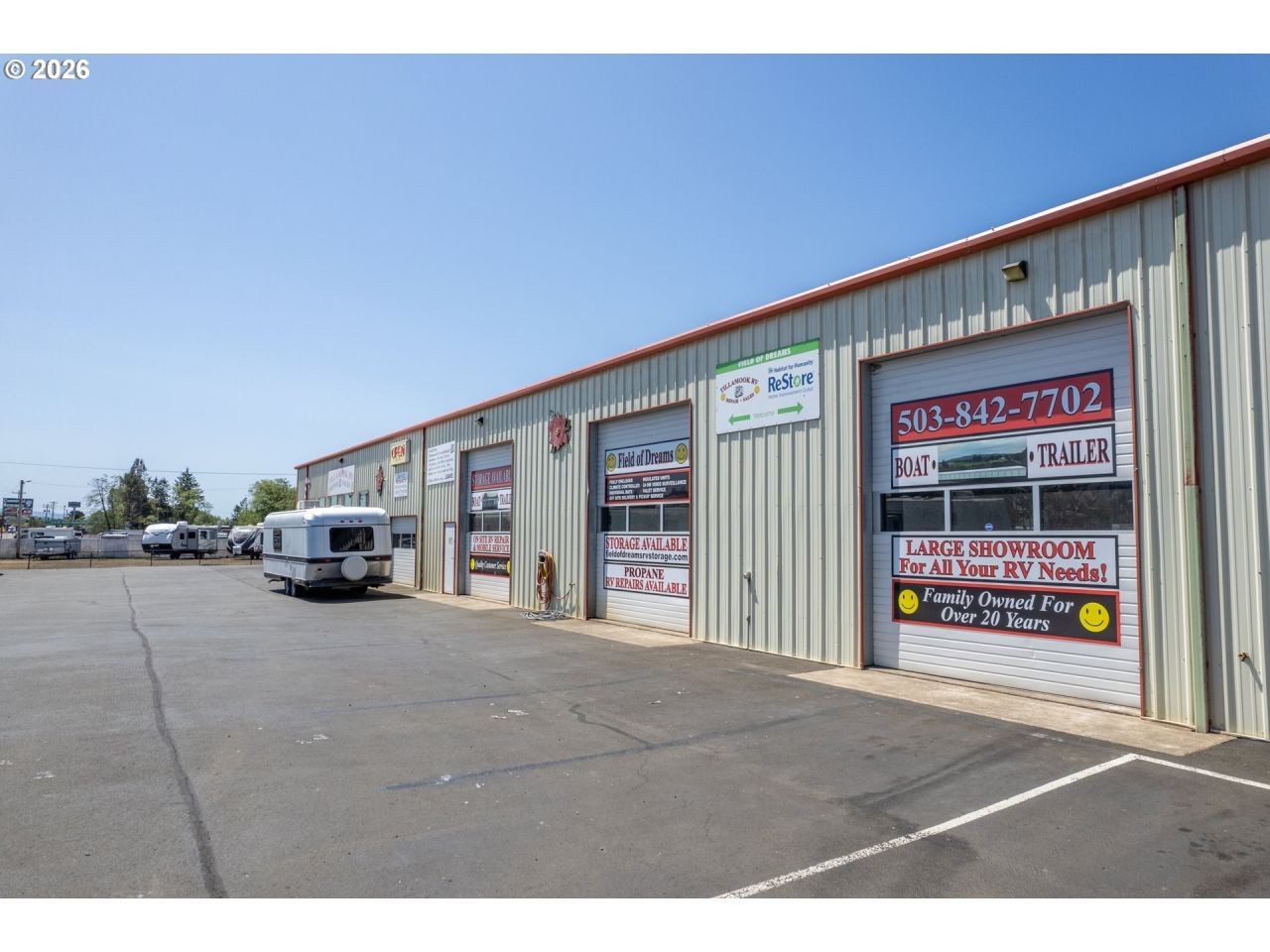 Prime Hwy 101 Frontage in Tillamook-11,250 SF Commercial Warehouse/Retail/Showroom Bldg., plus 5,000 SF Full Height Mezzanine. High grade, well built steel building w/6 drive-thru (16x14') roll up doors, private offices, ADA restrooms, work areas, heated shop, HVAC showroom/offices, security camera/night lighting, great signage and highway visibility. Contiguous to Habitat for Humanity Building, directly adjacent to Tillamook Creamery; popular local/tourist visitor stop boasting over 1.3 Million visitors annually. Public water, commercial septic along with Maintenance Agreement for shared property use. The RV storage business is named the Field of Dreams. It offers an opportunity to purchase quality-built storage units located on a central Tillamook County Highway 101 location. The seller can provide onsite management for an extended period for the new owner. 33 Total Units - 25 units; 14 feet wide and 46 feet long, built in 2019. In 2024, 8 additional units completed with dimensions of 14 feet by 40 feet. Fifteen of the larger units have heating available. Additionally, tiny home residence onsite, rented on a monthly basis. P&L available with proof of funds and signed NDA. Tillamook RV is on 1.21 acres which includes a .34 acre parcel also bordering Hwy 101 and Field of Dreams is on 1.37 acres. Call to make an appointment to view!