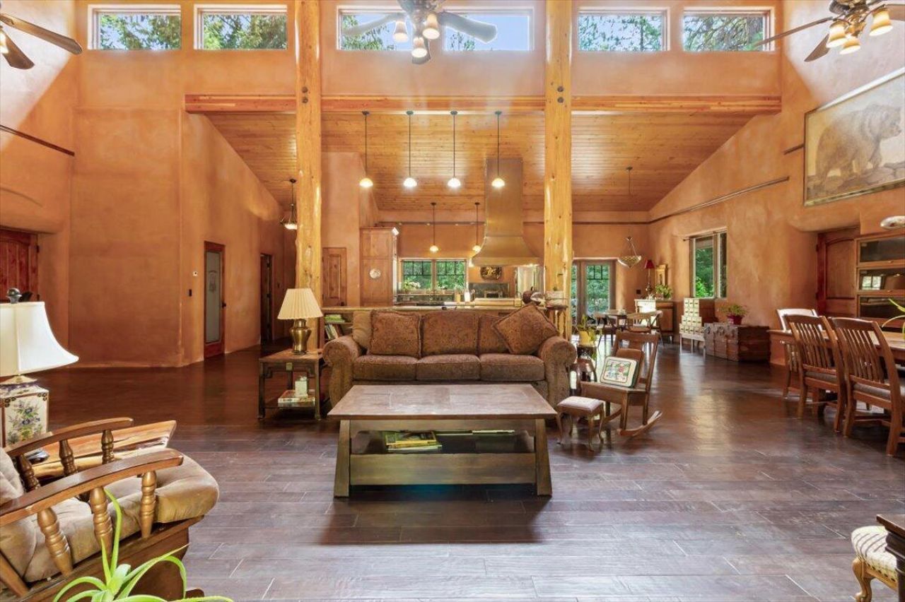SANCTUARY. There is a feeling of peace and rightness here. This unique property, from the thoughtfully designed layout to the environmental construction, welcomes you like a haven. Retreat. Multi-family living. Compound. From the inviting covered porch, step into the commons house -a great room and stellar kitchen plus a bathroom and 2 dining areas. Granite counters with plenty of space for multiple cooks to work, custom cabinetry, soaring ceilings, a Viking stove, well planned storage, windows, passive solar and doors in each direction. Here is where everyone gathers. Then, as bedtime draws near, head to the bedroom house, which boasts 2 en suite bedrooms plus a sewing/craft room and meditation/exercise room with a sauna. One could build multiple bedroom houses around the commons house. Nearby is a self-contained yurt with a kitchen and bathroom as well as a studio style bedroom/living area. All on your own private acreage. Gated. Solar.