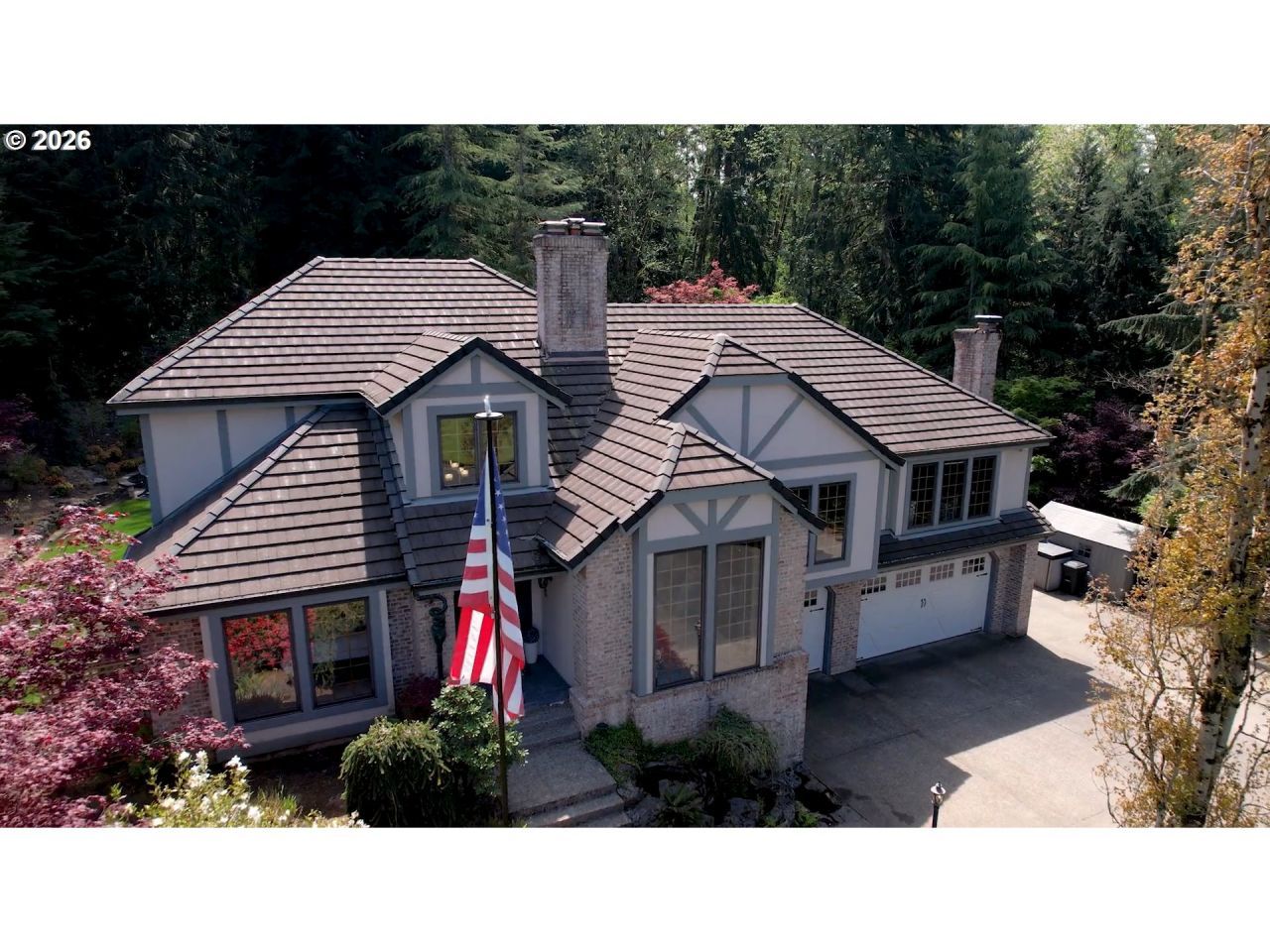 Offered at a new price. Beautifully maintained 4,349 sq ft home set on 5.73 private acres across two separate tax lots. The main tax lot includes approximately 4.3 acres surrounding the home, while the second tax lot consists of approximately 1.43 acres, separated by an auxiliary gravel road and offering cleared areas suitable for a future shop or additional structures. Built in 1992, this home offers solid construction and classic Northwest character with a spacious, flexible layout ideal for entertaining, working from home, or multigenerational living. Inside, enjoy an open floor plan with high ceilings, large windows, multiple living areas, four bedrooms, and three and a half bathrooms, plus two wood-burning fireplaces. The kitchen features granite countertops, tile flooring, stainless-steel appliances, including refrigerator, double convection oven, dishwasher, disposal, free-standing range, built-in ice maker, and a large granite island. The expansive primary suite includes large windows, a walk-out patio with hot tub access, and a spa-like bath with soaking tub, walk-in shower, double vanities, and generous closet space. The fully finished lower level offers a full bathroom, partial kitchen, king-size Murphy bed, and abundant storage, ideal for guests or extended living. Additional features include double-pane windows, garage door opener, laundry space with washer and dryer, built-in cupboards and shelving, and a built-in granite desktop for office or hobby use. Outside, approximately 2 acres of manicured landscaping include sprinkler irrigation, water feature, fire pit, hot tub, pond views, and a an Ipe hardwood deck. The property is fully fenced, including a private security gate up front, RV parking, long driveway, and three-car attached garage. Additional highlights include central AC, forced-air gas heat, public water, public sewer, gas hot water, and an original concrete roof that has been professionally cleaned and resealed. Schedule your showing today!