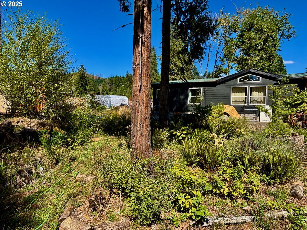 Adorable home situated on a .73 acre lot along Finn Creek in Leaburg. 1996 Manufactured home with 3 bedroom, 2 bath. The land is awesome, lots of special native plants. Elderberry, wisteria, blueberry's, cherry tree, apple and fig trees. Flowers are lupine, fox glove, peony and so much more. Adorable detached studio, could be used as guest room, art studio or workshop. This is a special place! Fire hardened with metal roofing and fiber cement siding. Located just past Ike's pizza on the McKenzie Hwy. Home is on a private drive away from the noise and right across from Leaburg Dam. Seller is relocating out of country, this is a rare opportunity in a really great community.Qualifies for VA.