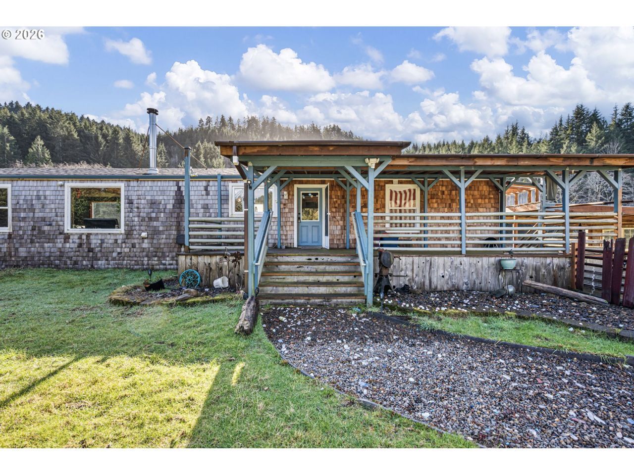 Tucked along the tranquil banks of the Yachats River is a rare waterfront retreat offering 6.37 acres of breathtaking natural beauty and expansive river frontage. Cast a line from your own backyard, wander the open acreage, or simply sit and listen to the gentle bubbling of the river as it winds through your private slice of paradise. Just five miles from charming Yachats and the Pacific Ocean, this property delivers the perfect balance of seclusion and convenience. A long driveway pulls you away from the main road and into a peaceful setting. The home welcomes you with a covered deck, an ideal spot for morning coffee or winding down after a long day. Thoughtful updates include a newer roof, updated flooring, and striking stone accents that add warmth and texture. The spacious kitchen is designed for gathering and everyday living, featuring butcher block countertops, abundant prep space, a coffee nook, large pantry, and an island with extra cabinetry. Natural light pours through vinyl windows, framing serene river views and filling the home with a bright, airy feel. The large living room offers plenty of space for entertaining or cozy nights in, with a woodburning stove; perfect ambiance for cooler coastal evenings. Two generously sized bedrooms and two full bathrooms provide comfortable accommodations, whether for full-time living or weekend escapes. Every space feels inviting, relaxed, and connected to the surrounding landscape. The sprawling 6.37 acres of flat, usable land include a barn/shop, ideal for hobbies, storage, or a small farm setup. A covered carport offers additional vehicle space, while a charming studio shed invites creativity, perfect for art, writing, or quiet reflection. Bask in the sunlight, take in the views of a thousand trees, and embrace the peaceful rhythm of riverfront living. Whether you envision a primary residence, private getaway, or an Airbnb opportunity, this is Oregon Coast living at its most serene. Your riverfront retreat awaits.