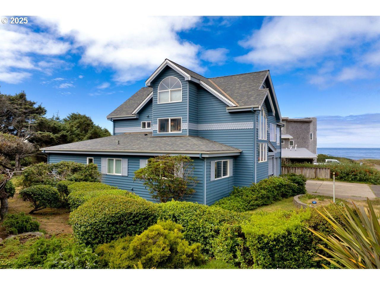 OPEN HOUSE 2/15/26 noon to 3pm.Huge price reduction!! Owner has moved and ready to negotiate. Welcome to Yachats, the Gem of the Oregon Coast! One house back from the ocean this stunning 3-story beauty has magnificent white water views. Starting on the lower level are two ensuite bedrooms with a large primary with two closets and large bathroom including two sinks, soaker tub and separate shower. Head to the main floor on easy stairs to awe inspiring views from the multiple windows of the main living area. Large kitchen with a nice pantry, propane, pass-thru fireplace and an expansive living/dining area. Head to the next level with a spiral staircase to more views. This area has a full bath and many built-ins and office/computer space, a sitting area and overlooks the living area. There's an attached two car garage and lots of storage behind the garage. Towards the ocean there is the great 804 walking trail with benches to enjoy the ocean up close. Please make an appointment to see, you won't be disappointed.