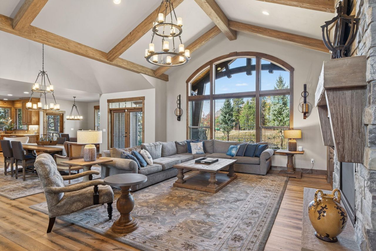 This luxury retreat offers a fantastic floor plan and high-end finishes throughout. The main level features three primary suites, a spacious great room with fireplace, a gourmet kitchen, and a covered patio with hot tub, fireplace - perfect for entertaining year-round. A convenient laundry/mudroom connects to the three-car garage. Upstairs, youll find three additional ensuite bedrooms plus a generous bunk room. Sold furnished, this home is ready for you to enjoy the Caldera lifestyle ? just steps from golf, trails, and resort amenities.