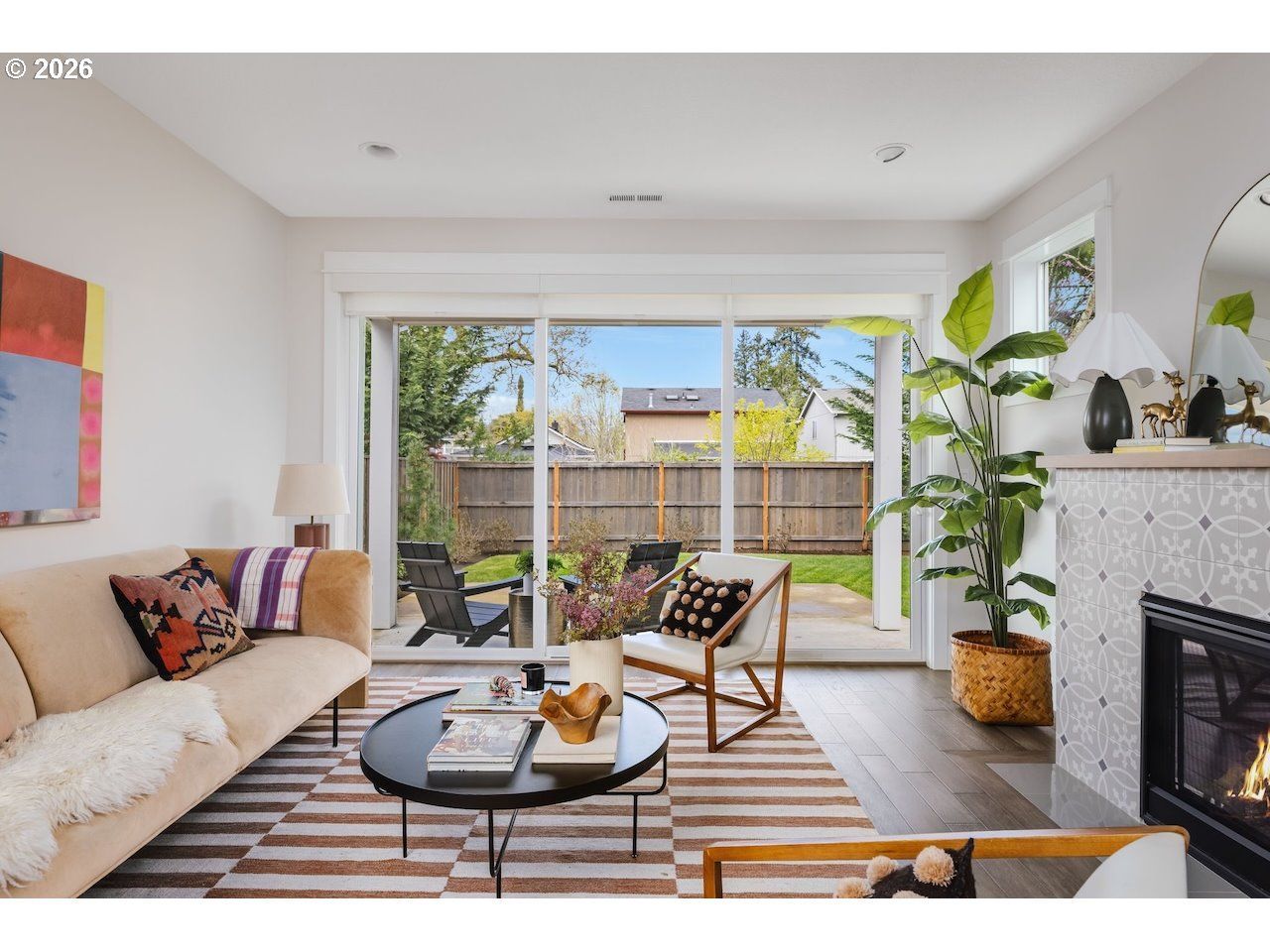 Some homes just work. Everything feels considered, nothing feels worn, and you walk in wondering why you ever settled for less. That is 5807 SE Tolman, and yes, it is as good as it sounds. Built in 2020 by Renaissance and lovingly cared for by a single owner, this Woodstock gem lives larger than it looks. A wide open main floor with soaring 9-foot ceilings and three floor-to-ceiling windows draw the eye straight to the backyard, flooding the space with light and making the space feel even bigger than it is. The current owner calls it a magic trick. We are inclined to agree. The kitchen is a standout with a large island, counter seating for three, quartz counters, soft-close drawers, stacked tile backsplash, pendant lighting and high-end stainless appliances. A walk-in pantry tucked under the stairs keeps everything organized and out of sight. A gas fireplace with tile surround anchors the living room and engineered hardwood floors elevate the spaces. Central AC keeps things comfortable year round. It is all very I have my life together energy. Upstairs are three bedrooms with views of surrounding greenery, two full bathrooms and a conveniently located laundry room. No damp basement, no mystery smells, no excuses not to do laundry. The oversized primary suite sits above the garage, quiet and tucked away, with dual sinks, a tiled walk-in shower and a big walk-in closet. The backyard is a legitimate destination. A large covered patio with a gas line for the barbecue, overhead lights, a sprinkler-fed lawn, a storage shed and true privacy courtesy of the alleyway behind. Solar panels (6.94 kW) keep utility bills low, alongside the very low taxes. You are welcome. Walk to Woodstock for coffee, dinner and daily errands. Tomo Ramen, Pizzeria Otto and The Heist food pod are close. Mt Scott Park with its newly renovated indoor pool is just one mile away. This one is the real deal.