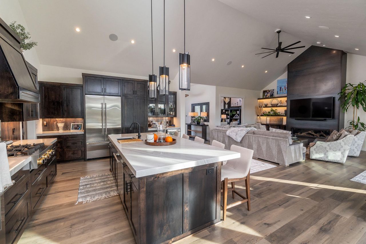 Welcome to your exquisite oasis in Bend, Oregon! This stunning single-story residence, built in 2021 and barely lived in, offers 3,727 sqft of luxurious living on a sprawling 3.6-acre estate, just moments from the airport. Step inside to discover a sophisticated open floor plan, highlighted by a magnificent primary suite that boasts a spa-like bath with a walk-in shower, a soaking tub, and an expansive walk-in closet complete with a separate washer and dryer. Three additional ensuite bedrooms provide privacy and comfort for family and guests, while an elegant office and a spacious bonus room enhance your living experience. Indulge your inner connoisseur in the hidden wine room, or entertain effortlessly with the secret butlers pantry featuring a full-sized refrigerator. The three-car garage and a remarkable 3,000 sqft shop offer ample space for all your pursuits. This home embodies the perfect blend of sophistication and comfort.