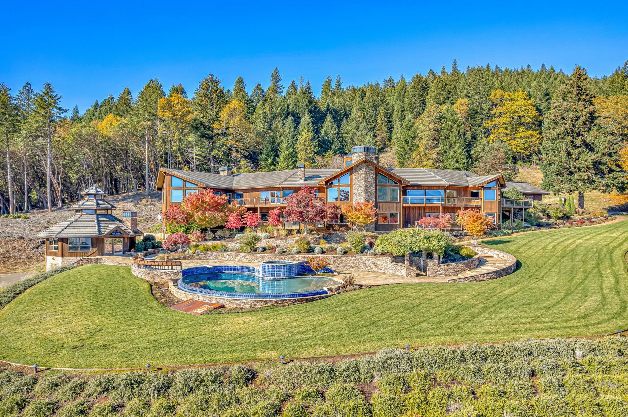 Welcome to Sky Ranch, a 12,000+ multi-family estate on 83 acres, nestled in the beautiful Cascade Mountains of Southern Oregon. Back on market at no fault of property. The sweeping private drive reveals the formidable 10,199 mountain lodge, custom-built by Robert Repine, the original 1920s farm/guesthouse (approx. 2,500), and the 3,600 detached shop/garage. Inside the main home, you are welcomed by a Giant Bird of Paradise plant that the home is built around. On the main level, you will find a spacious living room with a bar, two built-in dens, a chefs kitchen, and the 2,300+. primary suite complete with an en-suite office, two bathrooms, and a sauna. Downstairs, there are 3 additional bedrooms, a recreation room, and movie theatre. Stepping outside, there are extensive stone walkways surrounded by professional landscaping that will take you down to the pool, hot tub, and large poolside bar, with two full bathrooms/locker rooms below. Please find extended remarks attached.