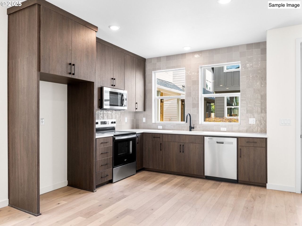 Built by a multi-year Street of Dreams builder and Builder of the Year award winner by the Home Building Association, I am a brand new detached home in a cottage cluster in Foster-Powell, thoughtfully crafted with quality, efficiency, and long term durability in mind. I offer two bedrooms and two and a half baths, including a convenient half bath on the main floor. My open concept main level blends living, dining, and kitchen spaces seamlessly, while tall ceilings and oversized windows bring in abundant natural light. The kitchen is designed for gathering and everyday function, featuring solid surface countertops, custom cabinetry, a tiled backsplash, and stainless steel appliances. A slider off the living room opens to a private fenced patio and outdoor space, creating an easy extension of the main level for relaxing or entertaining. Upstairs, you'll find two comfortable bedrooms, including a spacious primary suite with private ensuite bath, plus a centrally located laundry area positioned between the bedrooms for added convenience. Fresh landscaping and modern curb appeal create a strong first impression. Unlike many new construction homes, I am not a condo, there is no HOA, and you own the underlying lot outright. My list price is for buyers eligible for Portland Housing Bureau's System Development Charge Exemption SDC, an initiative promoting affordable housing across the City of Portland. If you're not familiar with the program, contact my people; they're experts and happy to guide you. Located approximately 0.1 miles from Kern Park, with a Walk Score of 86 and Bike Score of 99, I am approximately 0.4 miles to Heartbreaker Neighborhood Kitchen, 0.3 miles to Pieper Caf?, 0.5 miles to Assembly Brewing, and 0.4 miles to Hammer and Stitch Coffee Roasters. Modern, efficient, and full of character, I am ready to welcome you home.