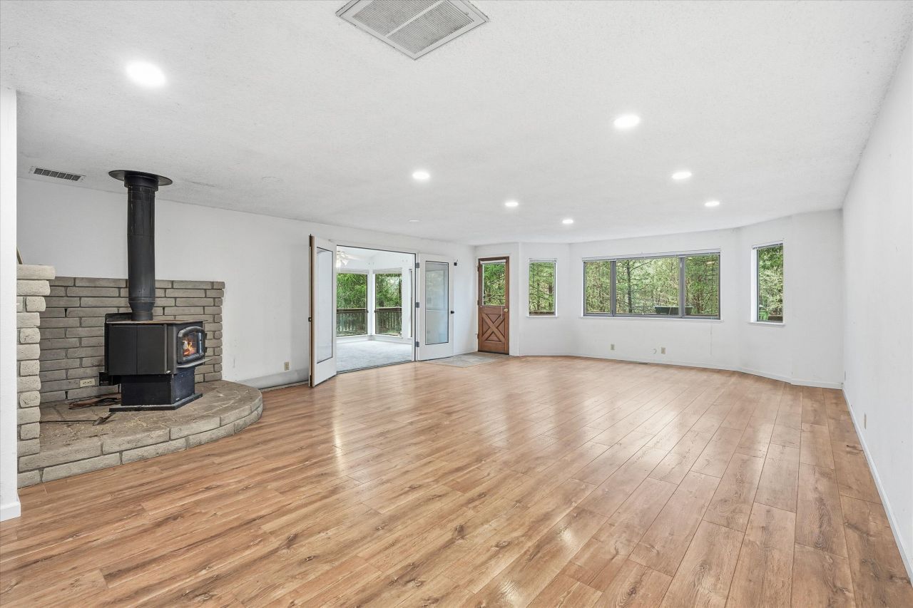 Private country setting at the end of the road just outside Rogue River with gorgeous mountain views. New carpet and kitchen linoleum. This 11.5-acre property offers a mostly wooded landscape with a seasonal creek for added peace and privacy. The 3,586 sq. ft. home features 3 bedrooms, 3 baths, walk-in closets, a spacious kitchen with island and pantry, and a cozy living room with bay window and wood stove. Downstairs includes a large bonus/game room, bedroom, bath, and storage.Enjoy a circular driveway, RV parking, 20x50 detached 3-car shop with 220 power, additional outbuilding, garden beds, large deck, and BLM access.