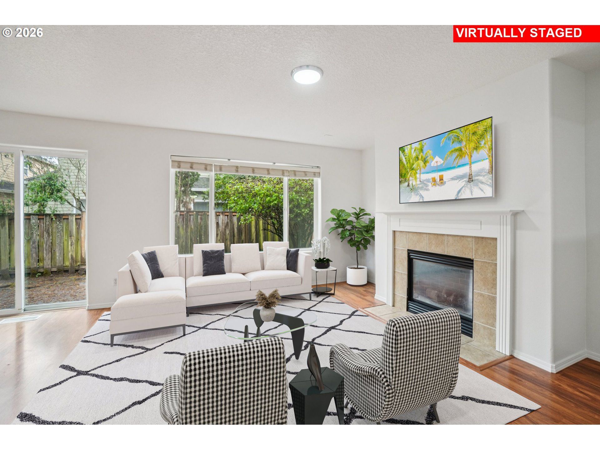 Welcome to Orenco Gardens living at its best-where community, convenience, and comfort come together. This beautifully maintained 2-story home offers an inviting open-concept layout with a warm and functional great room featuring a cozy gas fireplace and a versatile main-level flex space-ideal for a home office, media room, or additional living area.The kitchen is thoughtfully designed with quartz countertops, stainless steel appliances, a built-in microwave, gas range, pantry, and ample cabinetry-perfect for both everyday living and entertaining.Upstairs, you'll find generously sized bedrooms, including a spacious primary suite with a walk-in closet and private bath. Fresh interior paint throughout creates a crisp, move-in-ready feel, while laminate flooring and thoughtful finishes add durability and style.Enjoy outdoor living with a charming front porch, fenced yard, and patio space-perfect for relaxing or hosting. Recent updates include a newer roof and water heater (both approximately 2 years old), plus exterior paint completed within the last few years for added peace of mind.Located in the desirable Orenco Gardens community, residents enjoy access to parks, sport courts, and beautifully maintained common spaces. Just minutes from Orenco Station, shopping, dining, groceries, and the farmers market-with easy access to light rail for a seamless commute. Mortgage savings may be available to buyer of this listing. [Home Energy Score = 5. HES Report at https://rpt.greenbuildingregistry.com/hes/OR10246723]
