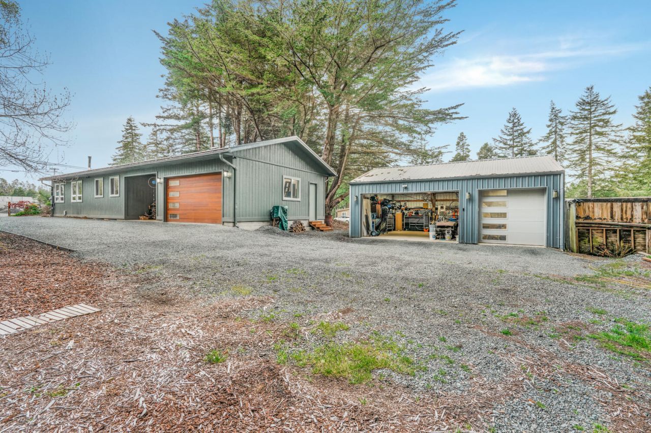 Discover one-of-a-kind retreat where refined design meets tranquility of private, wooded acre minutes from Bandon. Reimagined through lens of creative designer & engineered for both performance & livability, property stands apart in both form & function. Home has light-filled living space w/ floor-to-ceiling fireplace & windows that bring landscape indoors. Clean lines, intentional material selection & seamless flow define space. Stranded bamboo flooring in main living areas & undyed wool from black sheep in bedrooms. Kitchen w/ quartz counters, SS appliances, soft-close cabinets & eat bar. Primary w/ walk-in closet & spa-inspired bath w/ dual vanities, soaking tub & walk-in shower. 2 more bedrooms give flexibility for guests or home office. Outbuildings include 24x30 shop w/ 100-amp service & 220V, insulated oversized 24x20 garage w/ built-ins, climate-controlled greenhouse & horse barn. Raised beds, RV parking w/ septic hookup & private setting w/ natural spring complete package.