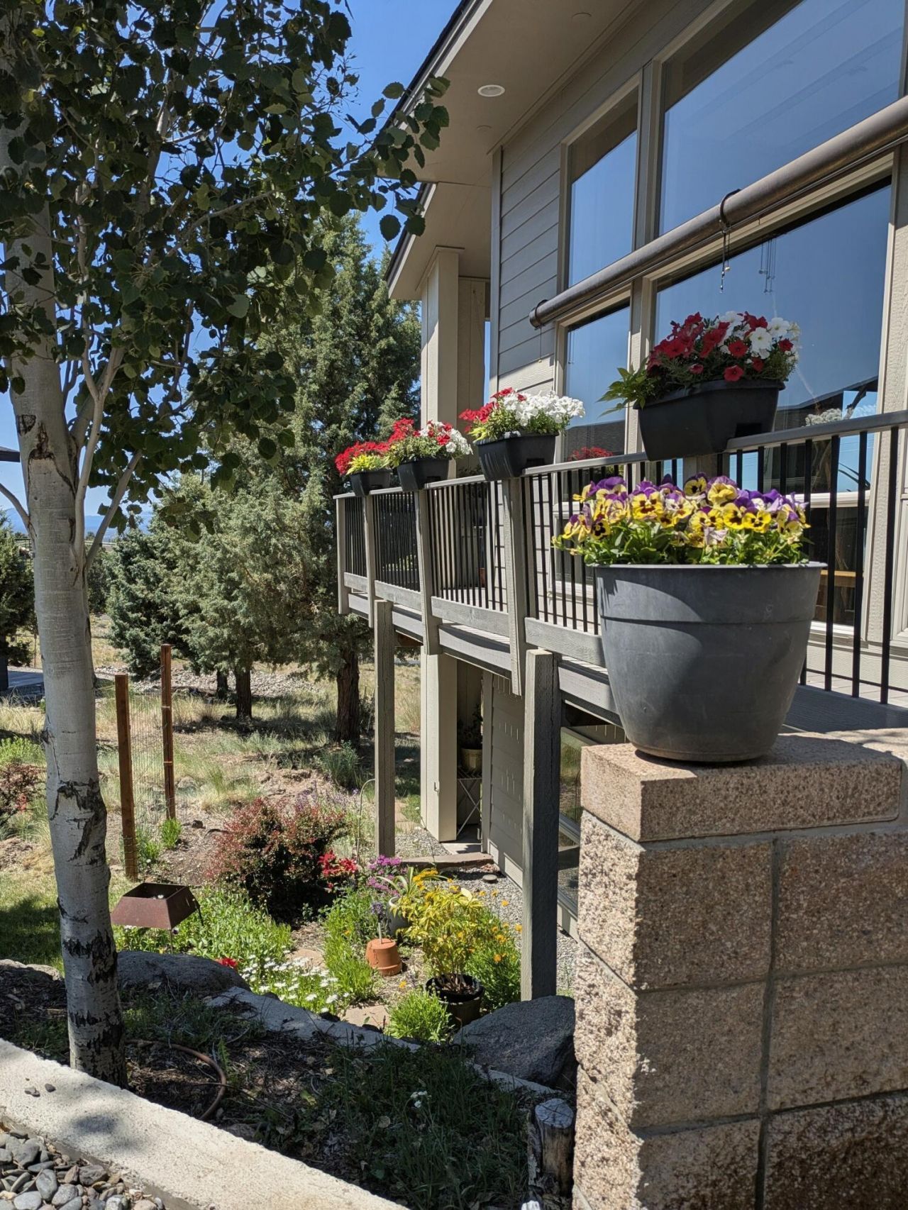 This home nurtures, protects and comforts. Located in Eagle Crest, harmonizing with the high desert, using Southwest, Mediterranean, and Scandinavian Hygge concepts. Super-insulated, energy-efficient, with passive-solar features and fire-resistant block walls provide all-season comfort and safety. 3 bedrooms/en suites on separate levels with sought after expansive mountain views from windows, balcony, deck, and patio. Light-filled great room, stained concrete floors, artisan tile, high-end finishes and wood-burning stove greet you as you enter. Main floor ensuite offers stair-free, independent living; upper level ensuite offers solitude and mountain views; coffee on the balcony, late night star gazing, or a read in the nook. Multi-purpose, lower-level ensuite (currently art studio), has full bath, separate living area, private entrance and patio. Extras include covered, wrap-around deck, hot tub, and enormous finished storage. A basalt water feature and nat