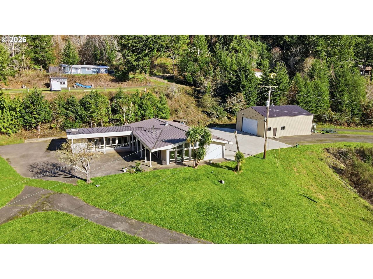 Welcome to 94475 Golf Course Ln in North Bend - a rare opportunity to own over 10 elevated acres of breathtaking Oregon Coast beauty. This spectacular property features a beautifully renovated 3,109 sq ft custom single-level home with 3 bedrooms and 3 bathrooms, vaulted ceilings, and unobstructed bay and city views.The gourmet chef's kitchen is designed for entertaining, while expansive windows invite natural light and frame the stunning scenery. Outside, bay and city views can be seen from paved walkways lined by trees creating a lush, park-like setting that feels private, secluded and serene. New 1,700 sqft garage/shop with attached greenhouse offers space for extra toys/hobbies & those with a green thumb.Formerly the historic Kentuck Golf Course, this Forestry-zoned property offers incredible versatility. Ideal for horses, a private golf retreat, event venue, nursery, bird sanctuary, or an exclusive estate, the land provides endless possibilities. Five private luxury RV hookup sites add flexibility for guests.Wildlife including elk and deer are frequent visitors, enhancing the peaceful coastal lifestyle. Located just minutes from the ocean, Oregon Dunes, fishing, crabbing, lakes, rivers, equestrian trails, and world-class golf at Bandon Dunes Golf Resort, this property delivers the very best of coastal living.A truly one-of-a-kind Oregon Coast retreat.