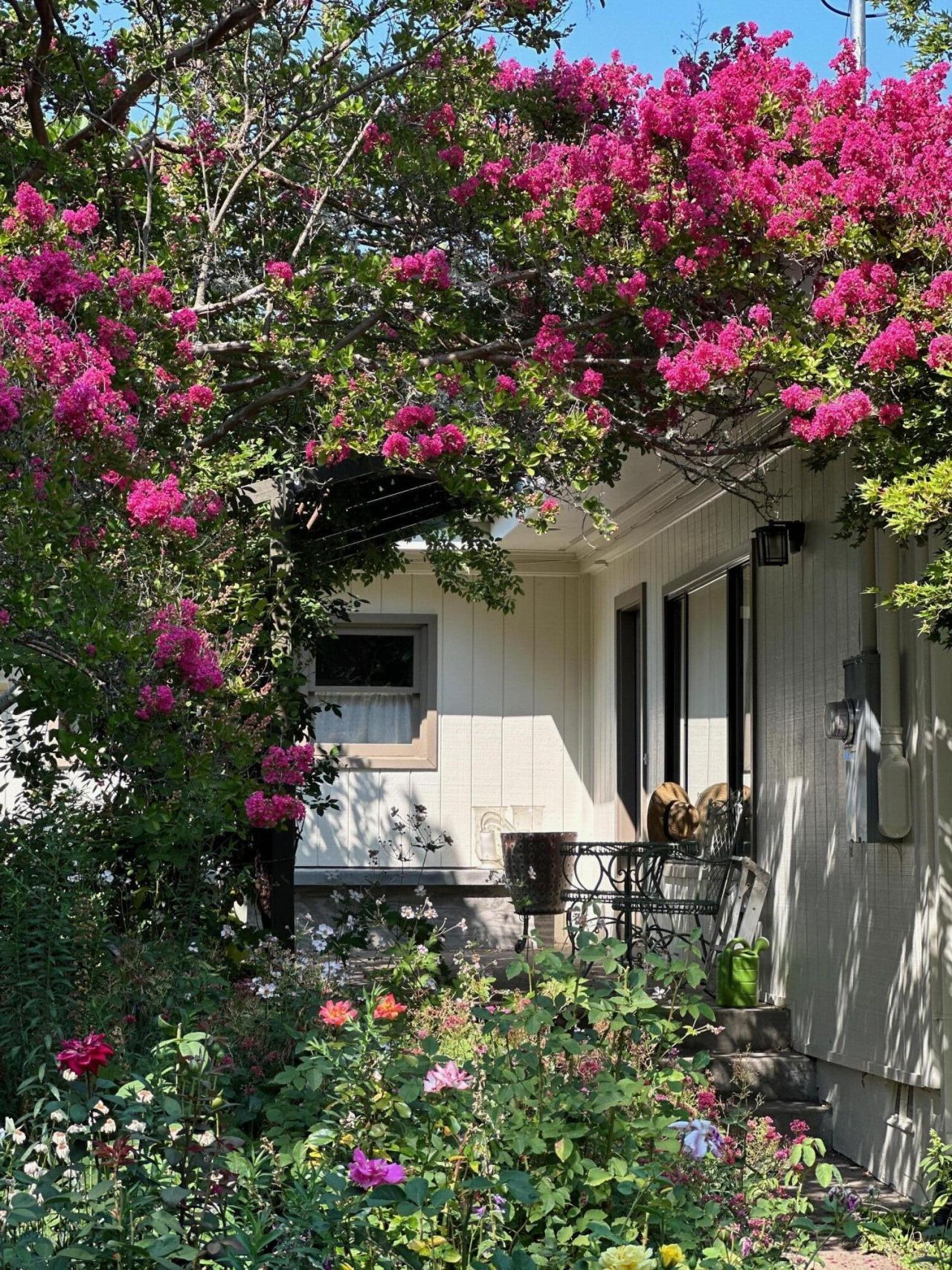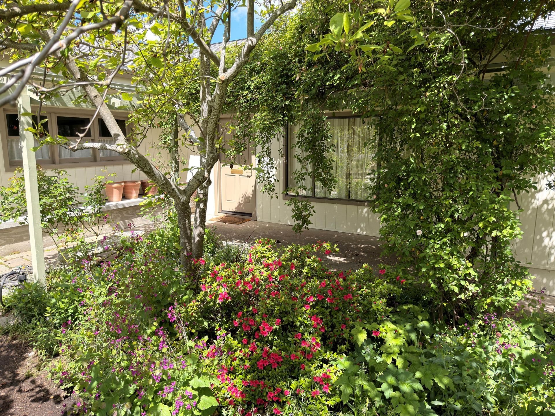 This beautiful home above the Boulevard, is in a very sought after location in Ashland. It has been updated inside with designer interior paint and wallpaper, new European appliances, Italian tile gas fireplace, imported French draperies, and gorgeous custom lights. There are three bedrooms, two bathrooms, large deck off the dining room, and a detached workshop with 110 and 220 power. There are charming built-in bookcases and a comfortable window seat in the living room. The gardens are truly amazing with mature magnolia trees, Japanese maple ornamentals, and gorgeous crabapple trees, plus over 100 rose bushes and perennials. There is TID irrigation for the property, and a garden area plus greenhouse/potting shed in the backyard. It is a spacious and private corner lot with deer proof fencing and is in an established neighborhood. The seasonal blooms and beautiful colors will welcome you into this very special home.